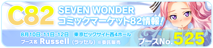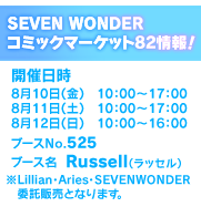 ※C82 SEVEN WONDERグッズの通販受付期間は、7/13(金)18:00~8/6(月)12:00です。 今回の通販は受注生産ではありません。 通販受付期間中であっても、注文数が上限に達した場合には販売終了となりますのでご注意ください。