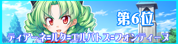断然ぺろぺろしたいキャラNo1です/スポーティな水着がスレンダーな体に良く似合うよディアーネ!/リボンが猫耳みたいで◎/結構褒められるのに弱そうなので褒めまくって顔真っ赤にさせたい/いつでも可愛いのだ!/はいちーず、にこーのにこーが可愛すぎますよディアーネ様っ!!/家来にしてほしい/この姫に仕えたい!第1位!/友達も気遣うディアちゃんかわいい